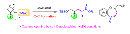 相關(guān)工作以題為“Mild C–C Bond Formation via Lewis Acid Catalyzed Oxetane Ring Opening with Soft Carbon Nucleophiles”(通過路易斯酸催化的氧雜環(huán)丁烷軟碳親核試劑開環(huán)反應(yīng)實現(xiàn)C-C成鍵)在線發(fā)表在《德國應(yīng)用化學(xué)》(Angew. Chem. Int. Ed.)上。常州大學(xué)為該論文的第一通訊單位,黃海博士為第一作者,在讀碩士張?zhí)煊顬榈诙髡?,孫建偉為論文的通訊作者。