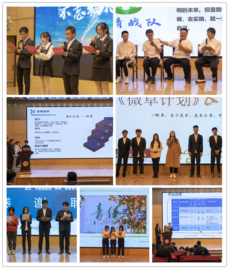 本次學(xué)業(yè)規(guī)劃大賽全校共29支團(tuán)隊報名參賽,通過初賽的選拔,共有10支隊伍進(jìn)入決賽。決賽由個人學(xué)業(yè)規(guī)劃講解以及小組才藝展示兩個部分組成,參賽選手結(jié)合PPT從自我認(rèn)識、學(xué)業(yè)規(guī)劃以及制定行動策略三個方面進(jìn)行闡述,深刻規(guī)劃剖析了自己隊伍及團(tuán)隊成員的優(yōu)劣勢,突出了隊伍特點,指明了學(xué)業(yè)未來的努力方向。通過近三個小時的比賽,“未來工程隊”以生動流暢的演講以及合理的學(xué)業(yè)規(guī)劃設(shè)計獲得了本次比賽的一等獎;“星之隊”、“扶搖戰(zhàn)隊”獲得二等獎;“走千山戰(zhàn)隊”、“晚晴戰(zhàn)隊”、“微草戰(zhàn)隊”獲得三等獎、“智聯(lián)戰(zhàn)隊”、“螢火戰(zhàn)隊”、“細(xì)雨戰(zhàn)隊”、“鳴海戰(zhàn)隊”獲得優(yōu)勝獎。