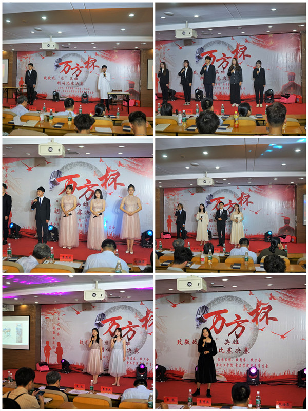 為了進(jìn)一步引導(dǎo)常大學(xué)子學(xué)習(xí)抗疫先進(jìn)人物事跡,展示中國特色社會(huì)主義制度優(yōu)勢,引導(dǎo)學(xué)生更加堅(jiān)定中國共產(chǎn)黨的領(lǐng)導(dǎo),更加熱愛祖國、熱愛中國共產(chǎn)黨,向戰(zhàn)“疫”英雄致敬。11月18日下午1點(diǎn)30分,由校圖書館、校團(tuán)委、校工會(huì)主辦,石油化工學(xué)院食品學(xué)院承辦的常州大學(xué)讀書月“萬方杯”朗誦大賽——致敬戰(zhàn)“疫”英雄決賽在圖書館報(bào)告廳舉行。本次大賽的評(píng)委有:校關(guān)工委副主任袁能、工會(huì)主席李秀英、直屬單位黨委書記、圖書館副館長姚致遠(yuǎn)、西太湖校區(qū)主任蔣偉中、材料科學(xué)與工程學(xué)院黨委書記呂琳華、校宣傳部副部長包海霞和校團(tuán)委副書記顧現(xiàn)朋。