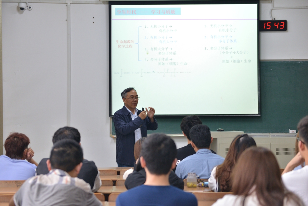 郭向云由自身學(xué)生時代的學(xué)習(xí)經(jīng)歷講起,強調(diào)了學(xué)習(xí)與質(zhì)疑的重要性;接著向同學(xué)們介紹了宇宙中古老的碳化硅,從一次實驗室的意外被合成到現(xiàn)代實驗中新穎的催化劑載體被應(yīng)用。郭老師分享了自己在學(xué)習(xí)科研中的感悟,引導(dǎo)同學(xué)們在學(xué)習(xí)中敢于質(zhì)疑,探索實踐,堅持不懈。