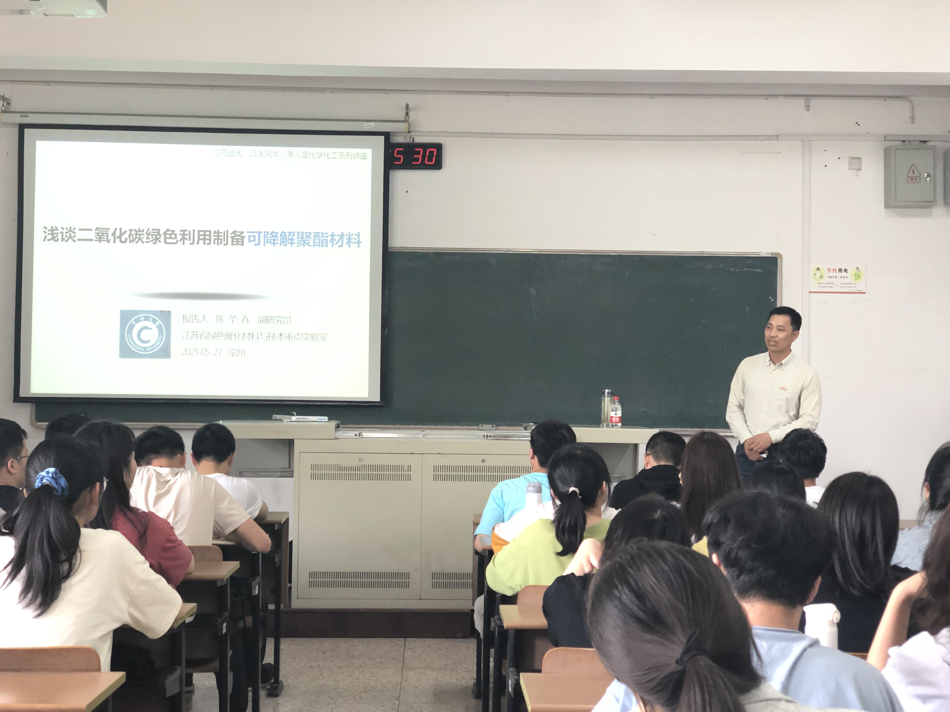 為讓同學(xué)們深入了解專(zhuān)業(yè)知識(shí),加深對(duì)二氧化碳利用的了解,我院于5月27日下午3:30,在w1313召開(kāi)第六屆化學(xué)化工節(jié)系列科普講座之“淺談二氧化碳綠色利用制備可降解聚酯材料”,特邀主講人為陳圣春老師。