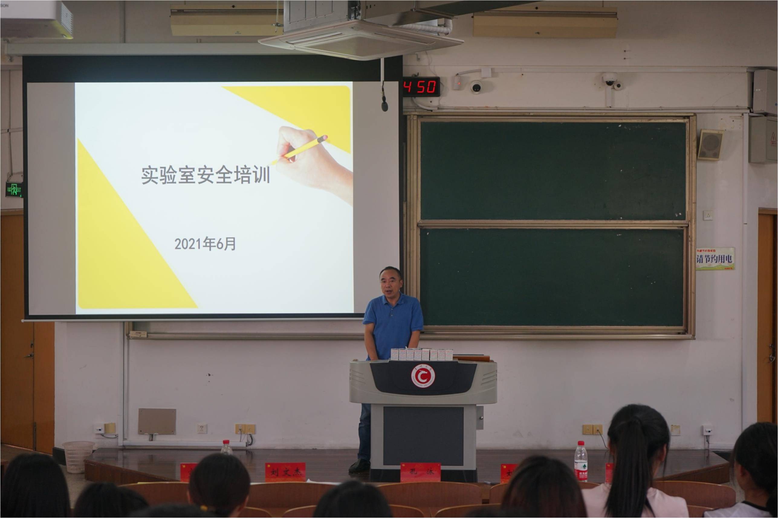 本次答辯分為PPT陳述和評委提問兩個環(huán)節(jié)。評委老師認真聽取了各個項目的匯報,并提出問題和建議。答辯結束后,周永南老師為今年新立項的創(chuàng)新基金項目成員做實驗室安全教育培訓。