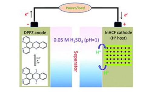 我院曹劍瑜-許娟團(tuán)隊(duì)最近在Chemical Communications上發(fā)表研究論文(DOI: 10.1039/d1cc01486b)。水系可充電電池通常以金屬離子為電荷載體。然而,金屬元素要么儲(chǔ)量有限,要么開采成本相對(duì)較高。在所有離子中質(zhì)子(氫離子)是最輕和最小的,在水溶液中具有最快的遷移速率,而且在地球上資源豐富。本論文設(shè)計(jì)了一種基于有機(jī)陽極和無機(jī)配合物陰極的水系可充電質(zhì)子電池。陽極二吡啶吩嗪中氧化還原活性吡嗪?jiǎn)卧目赡姘坊完帢O銦普魯士藍(lán)中質(zhì)子的快速嵌入-脫嵌使該電池在1 Ag -1下可實(shí)現(xiàn)37 mAhg -1的可逆比容量,并展示了良好循環(huán)穩(wěn)定性和出色的倍率性能。此項(xiàng)研究得到了國家自然科學(xué)基金和江蘇省綠色催化重點(diǎn)實(shí)驗(yàn)室科學(xué)基金的資助。