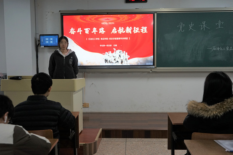 為貫徹落實習近平總書記關(guān)于黨史學習教育的重要論述,充分發(fā)揮“青年講師團”理論武裝“輕騎兵”的作用,把黨的科學理念在青年中落實,12月1日18:30,我院在W2312教室開展以“奮斗百年路,啟航新征程”為主題的四史講堂。本次四史講堂由青年講師團成員石婧主持。
