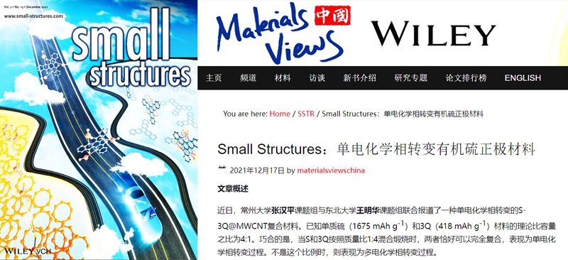 課題組與東北大學(xué)王明華教授合作的相關(guān)論文近日作為封面文章(Inside front cover)在Wiley新刊Small Structures上發(fā)表,并在12月17日Materials Views - China首頁(yè)進(jìn)行了詳細(xì)報(bào)道。論文第一作者為常州大學(xué)碩士研究生何志鵬。