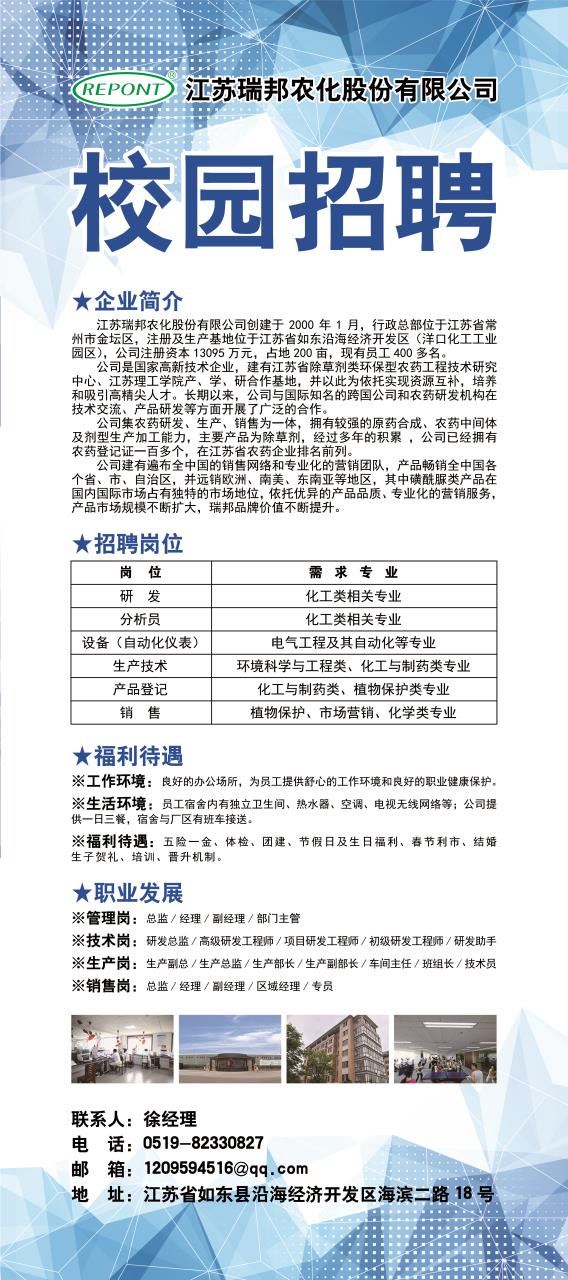 【就業(yè)】就業(yè)信息18079:江蘇瑞邦農(nóng)化股份有限公司
