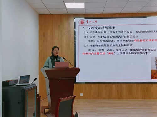 會(huì)上,董亞云對(duì)實(shí)驗(yàn)室基礎(chǔ)安全知識(shí)和規(guī)章制度進(jìn)行宣講,介紹實(shí)驗(yàn)室安全檢查工作安排,同時(shí)與聯(lián)絡(luò)員積極進(jìn)行互動(dòng)交流,了解實(shí)驗(yàn)室安全管理現(xiàn)狀,為參會(huì)人員答疑解惑。趙彩霞提出,要推動(dòng)實(shí)驗(yàn)室安全教育常態(tài)化與長(zhǎng)效化,促進(jìn)研究生養(yǎng)成科學(xué)規(guī)范的實(shí)驗(yàn)操作習(xí)慣,提高研究生科研素養(yǎng),為順利開展學(xué)術(shù)創(chuàng)新研究奠定堅(jiān)實(shí)基礎(chǔ)。