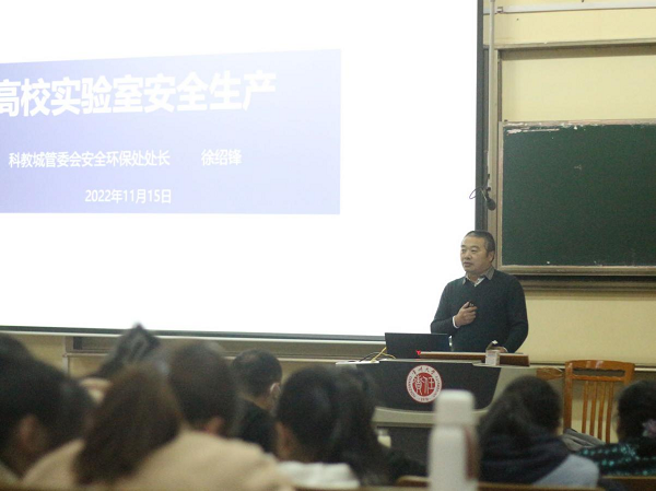 為增強(qiáng)學(xué)生實(shí)驗(yàn)室安全意識(shí),提高學(xué)生的實(shí)驗(yàn)室安全避險(xiǎn)能力,2022年11月15日下午,我院于W7階開展以“高校實(shí)驗(yàn)室安全生產(chǎn)”為主題的安全教育講座,特邀科教城管委會(huì)安全處徐紹峰處長主講,我院黨委書記管春英、輔導(dǎo)員劉爽、謝德華及2019級(jí)全體本科畢業(yè)班同學(xué)到場參會(huì)。