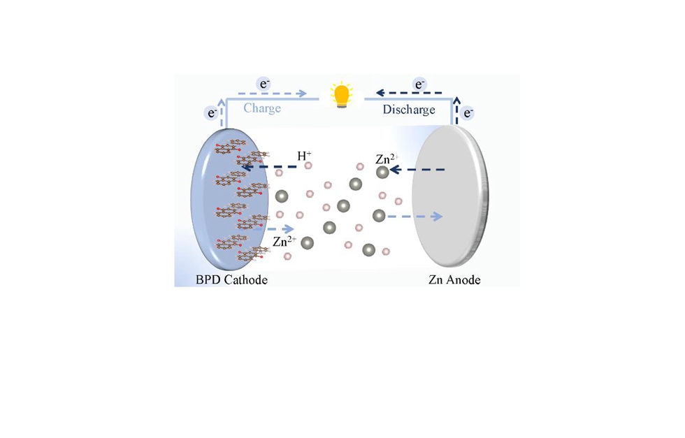 有機陰極材料由于其可設計的分子結構和不同的氧化還原基團而被廣泛用于水性鋅離子電池(ZIB)。由于最大化每分子量氧化還原活性基團的數(shù)量是增加電極材料理論比容量的一種有前途的方法,因此設計和合成具有豐富氧化還原基團的低分子量和高穩(wěn)定性陰極材料非常重要。我院曹劍瑜-許娟團隊報道了一種新的π-共軛N-雜環(huán)化合物陰極材料——苯并[b]吩嗪-6,11-二酮(BPD),它將醌與吩嗪作為雙氧化還原活性部分結合。BPD陰極充分利用了氧化還原活性中心(100%的容量利用率),表現(xiàn)出較高的比容量和能量密度。同時,通過原位表征、電化學實驗和DFT計算研究了BPD在充放電過程中的電荷存儲機制,并解釋了對完美四電子轉(zhuǎn)移的理解。
