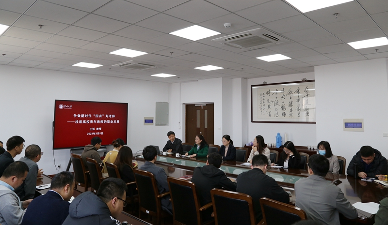 為關(guān)注青年教師成長(zhǎng),推動(dòng)教師素質(zhì)能力提升,2023年3月9日上午,石油化工學(xué)院分工會(huì)特邀全國(guó)教學(xué)名師,南京農(nóng)業(yè)大學(xué)博士生導(dǎo)師王恬教授為我院近年新入職青年教師作題為《爭(zhēng)當(dāng)新時(shí)代“四有”好老師——淺談高校青年教師的職業(yè)發(fā)展》的專(zhuān)題講座,30余名青年教師代表到場(chǎng)參加,學(xué)院黨委書(shū)記管春英、副院長(zhǎng)黃薇出席會(huì)議。