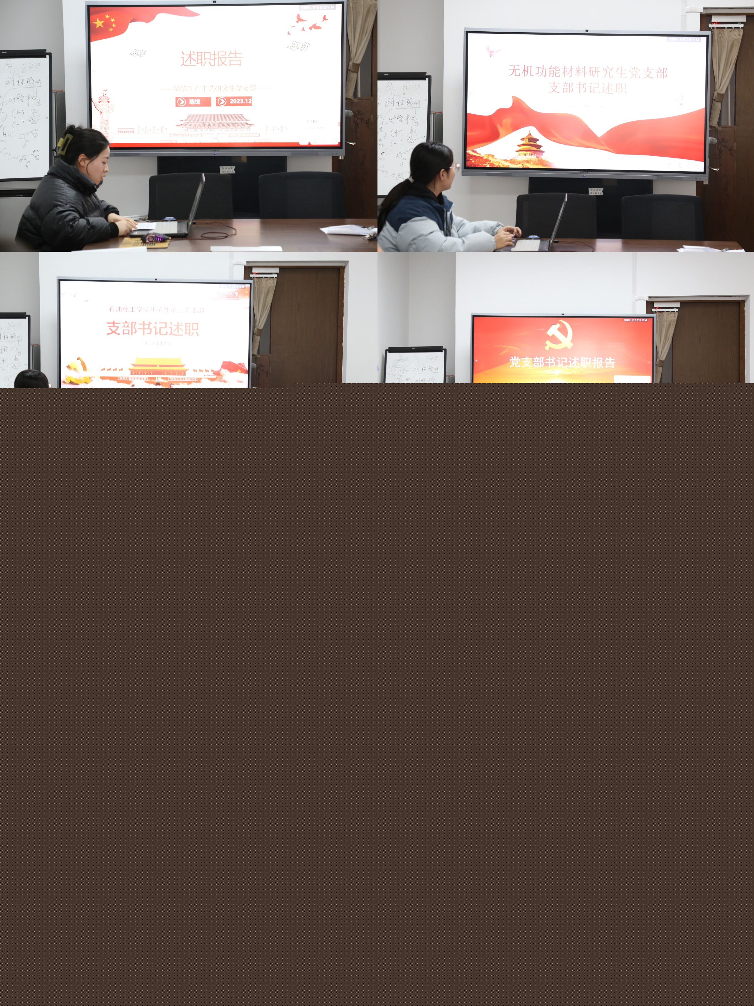 現(xiàn)場述職的8位學(xué)生黨支部書記結(jié)合2023年度本支部全面推進(jìn)黨的政治建設(shè)、思想建設(shè)、組織建設(shè)、作風(fēng)建設(shè)、紀(jì)律建設(shè)、作用發(fā)揮等情況,過去一年不斷加強(qiáng)黨建工作的主要做法、支部特色和亮點工作等方面,全方位、多角度地對過去一年的黨支部工作情況進(jìn)行總結(jié),分析存在的問題,展望下一年的工作規(guī)劃。劉茂燦對支部書記的述職內(nèi)容進(jìn)行了點評,對各基層黨支部過去一年通過不懈努力取得的工作成績給予肯定,并對工作中存在的問題提出了有針對性的建議和指導(dǎo)意見。