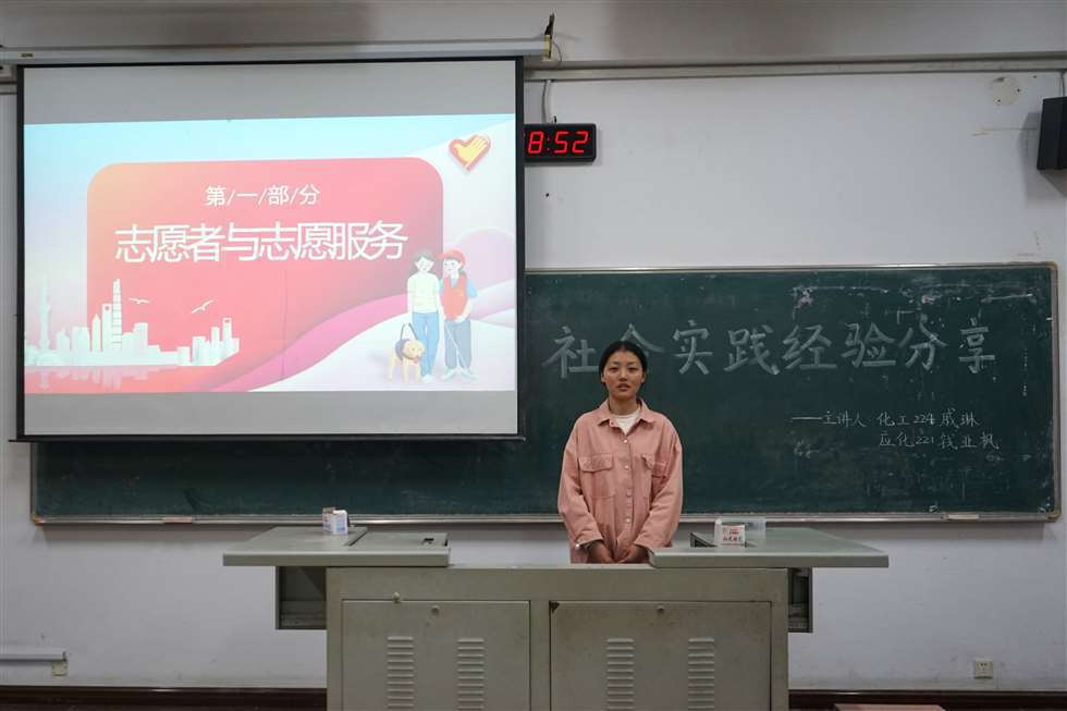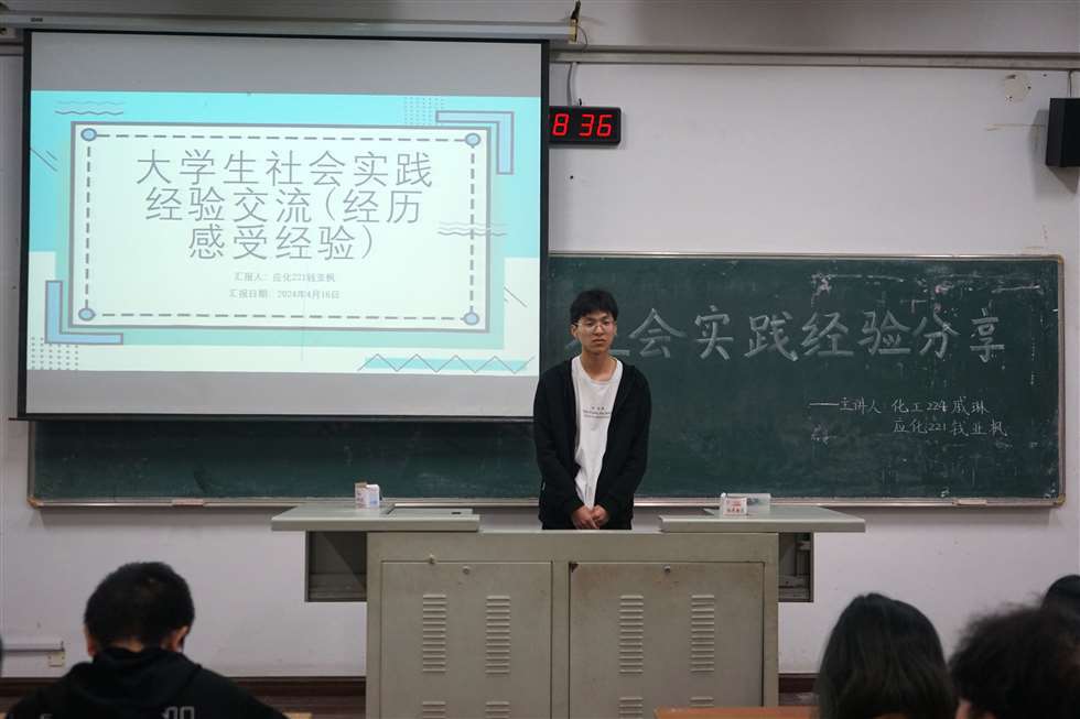 為增進(jìn)學(xué)生對(duì)于社會(huì)實(shí)踐的了解,激發(fā)學(xué)生的社會(huì)實(shí)踐熱情,營(yíng)造學(xué)院學(xué)生積極參與社會(huì)實(shí)踐的氛圍,我院于4月16日在w1201舉辦“石化青年說(shuō)”系列講座——社會(huì)實(shí)踐經(jīng)驗(yàn)交流。本次講座由化工224班戚琳、應(yīng)化221班錢(qián)亞楓主講,各年級(jí)學(xué)生代表參加。