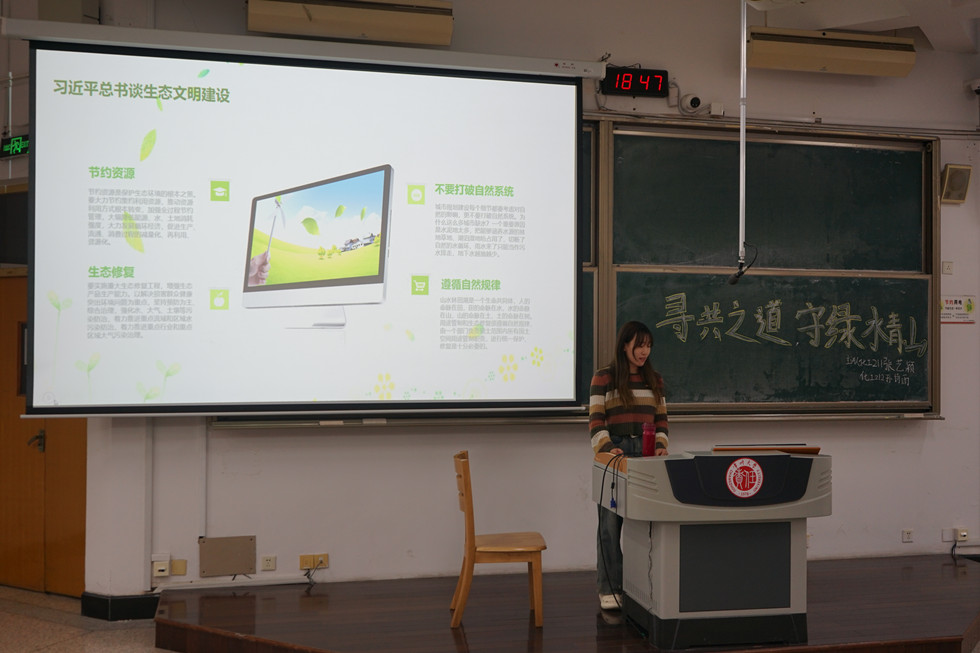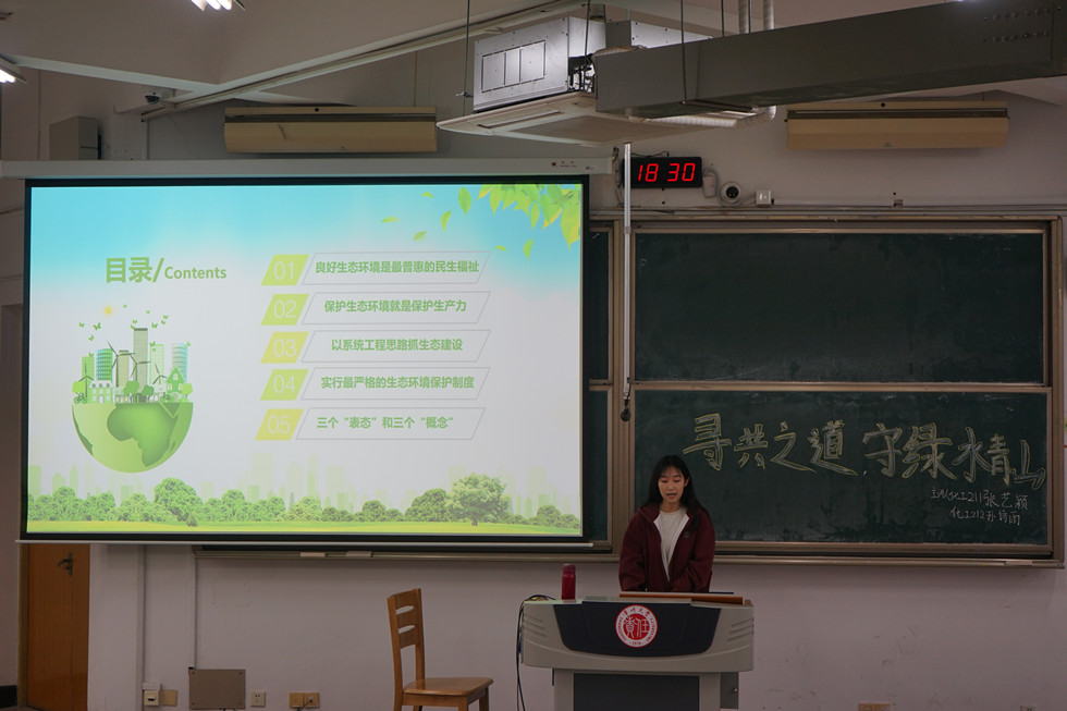 為弘揚(yáng)生態(tài)文明理念,建設(shè)綠色家園,我院于4月24日在W20舉辦“青年講師團(tuán)”系列講座——“尋共存之道,守綠水青山”。本次講座由我院學(xué)生第一黨支部黨員張藝穎、孫詩雨主講,各年級學(xué)生代表參加。