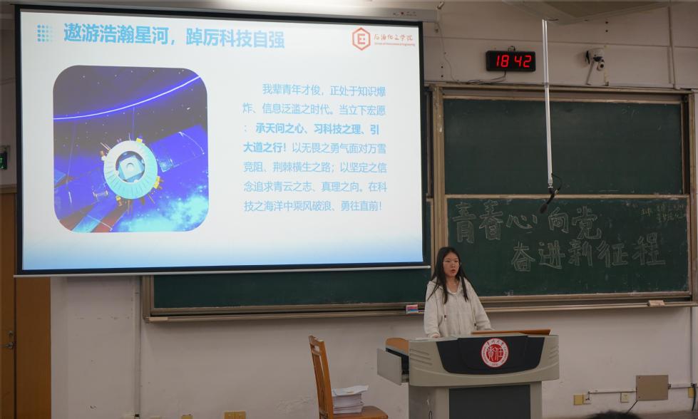 為弘揚(yáng)科學(xué)精神,提升我院學(xué)生科學(xué)素養(yǎng)和實(shí)踐能力,我院于5月8日在W15舉辦“青年講師團(tuán)”系列講座——“遨游浩瀚星河,踔厲科技自強(qiáng)”。本次講座由我院學(xué)生第一黨支部黨員董夢(mèng)瑤、學(xué)生第二黨支部黨員李倩主講,各年級(jí)學(xué)生代表參加。