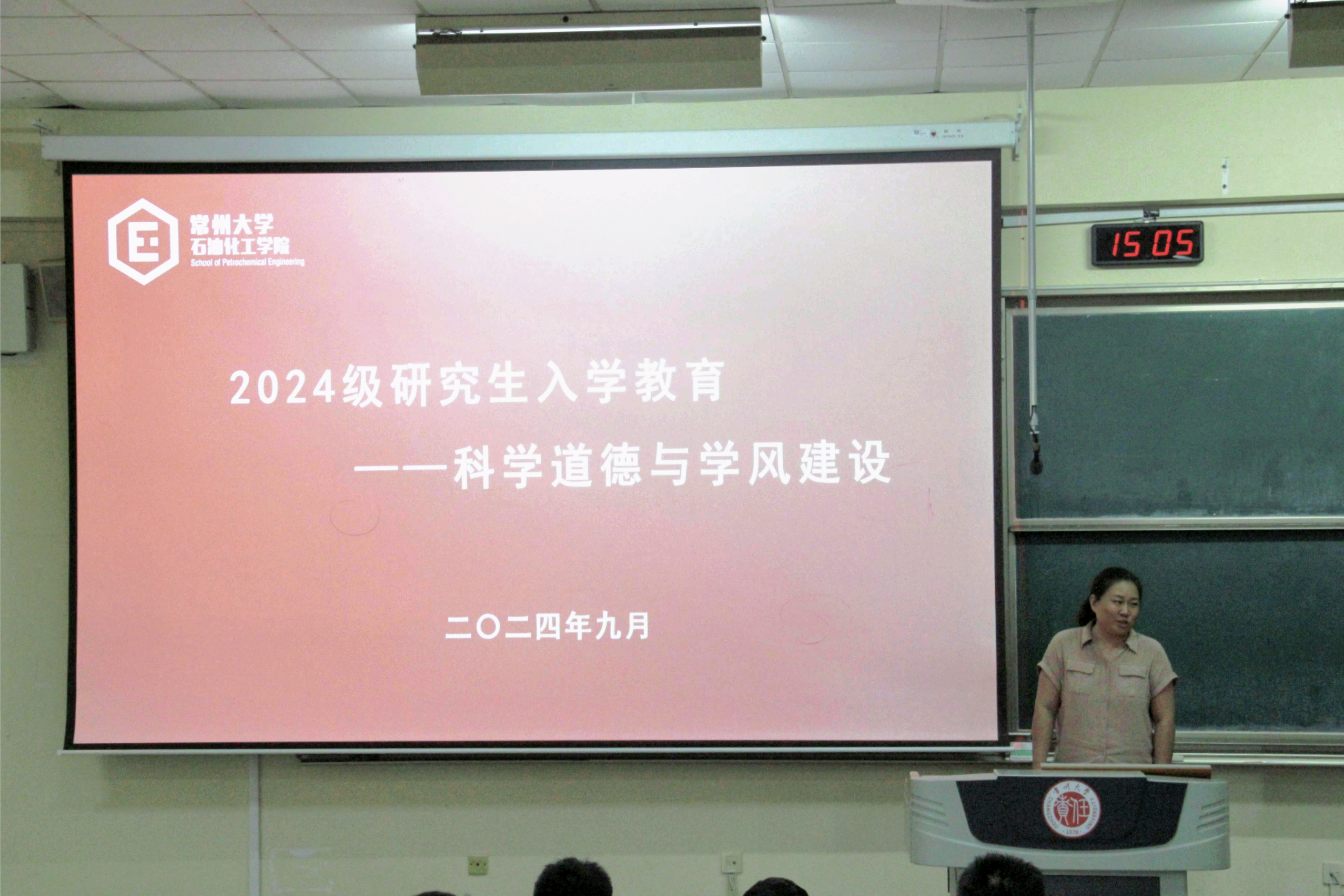 會上,趙彩霞首先向新生簡要介紹了常州、常州大學和石油化工學院,然后根據(jù)自身經(jīng)歷,分享了研究生學習科研的特點,提醒大家及時確立目標,盡早做好規(guī)劃,接下來,趙彩霞對研究生日常事務管理規(guī)定、評獎評優(yōu)辦法等政策文件進行詳細解讀,希望大家嚴守法規(guī)校紀紅線,筑牢安全健康底線,未來三年積極進取,在常大學有所成,實現(xiàn)自我。