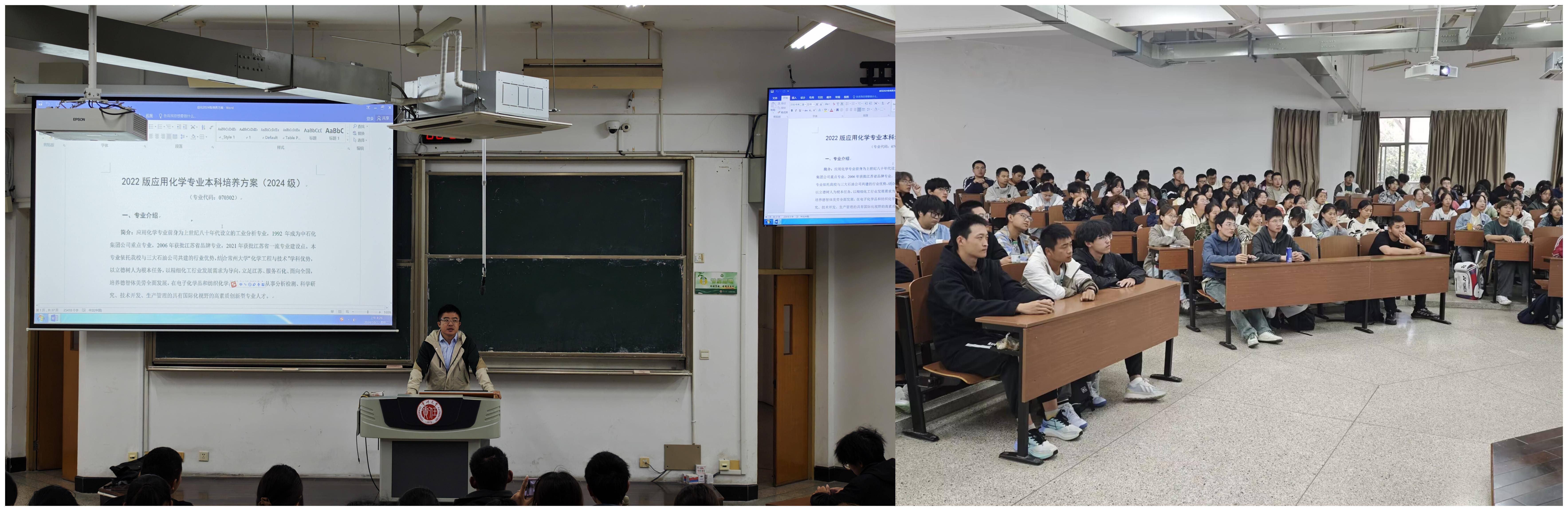 為幫助2024級(jí)新生了解專業(yè)特色,鞏固專業(yè)思想,激發(fā)學(xué)習(xí)興趣,明確未來職業(yè)發(fā)展方向。我院于10月22、23日開展專業(yè)思想教育主題講座。講座分別由應(yīng)化專業(yè)負(fù)責(zé)人吳大同、能化專業(yè)負(fù)責(zé)人何小波、化工專業(yè)教研室主任石劍主持。
