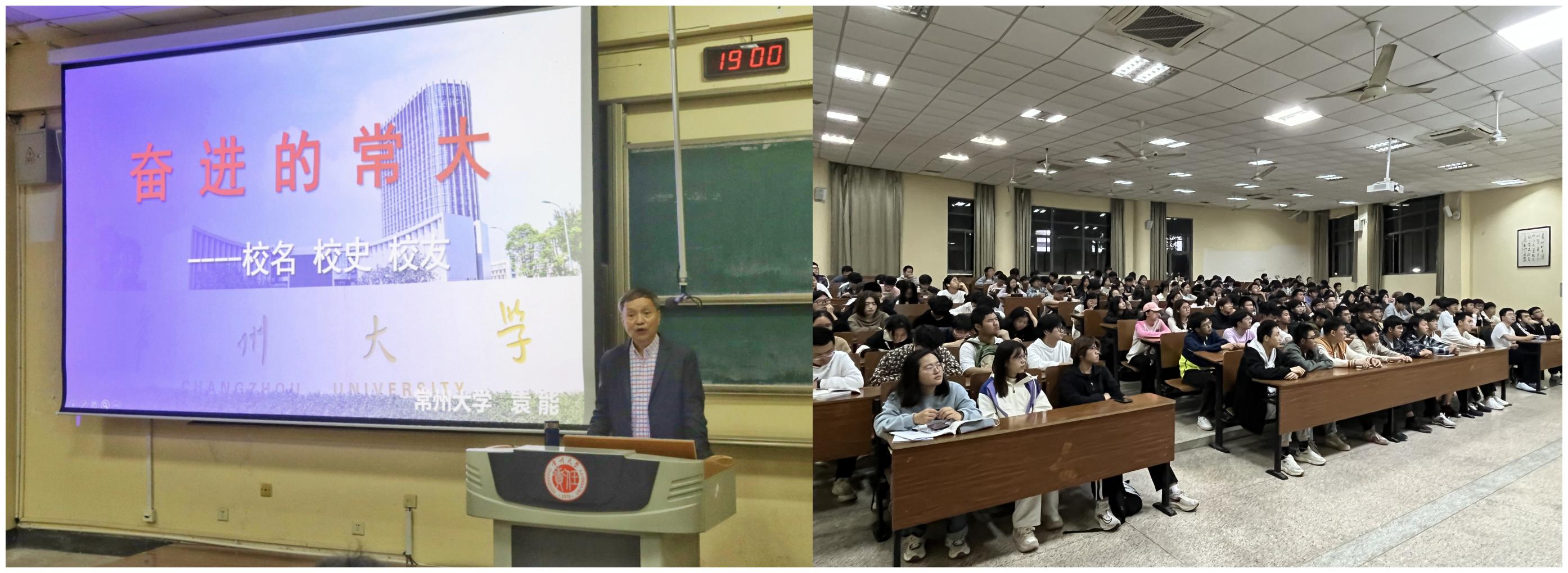 為幫助新生全面了解校史校情,增強(qiáng)對(duì)學(xué)校的認(rèn)同感和歸屬感,我院于10月30日、11月3日在階教開展了校史校情教育講座。本次講座由常州大學(xué)關(guān)工委副主任袁能主講,2024級(jí)全體新生參加。