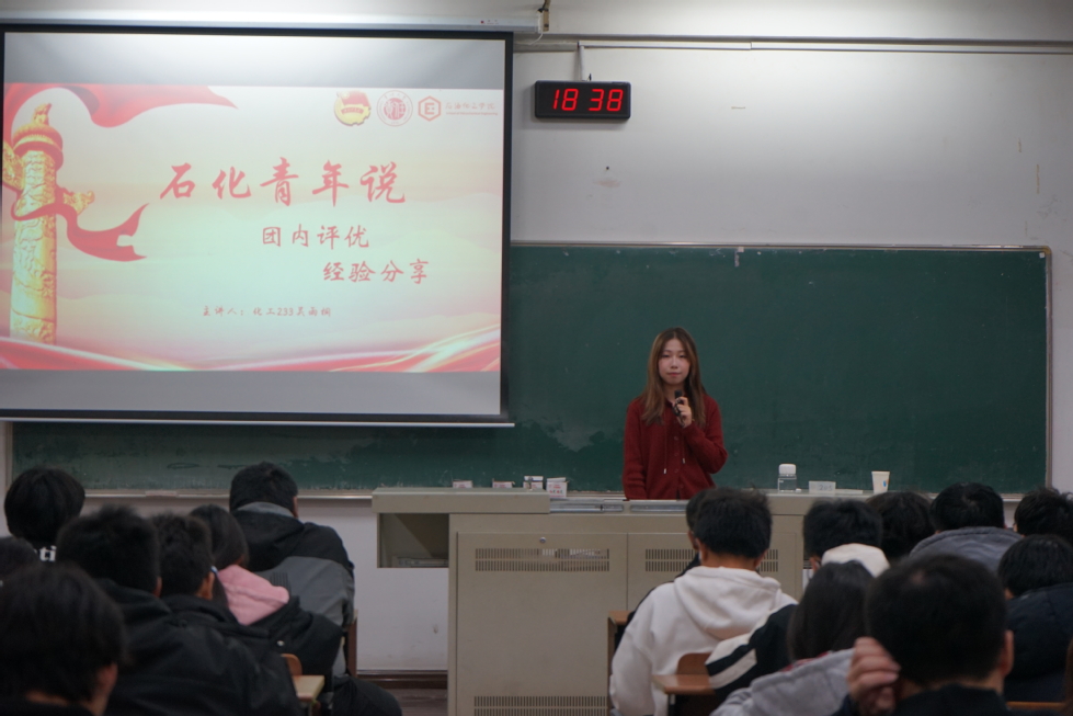 為使同學(xué)們深入了解團(tuán)內(nèi)評優(yōu)機(jī)制、提高其綜合素質(zhì)和能力,我院于12月3日在W1205教室開展“石化青年說”系列講座第四講——團(tuán)內(nèi)評優(yōu)經(jīng)驗(yàn)分享。此次講座由化工233吳雨桐、應(yīng)化231郭怡溪主講,我院學(xué)生代表參加。