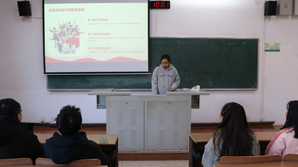 為了促進(jìn)各民族的團(tuán)結(jié)友愛(ài)、構(gòu)建和諧美好的民族大家庭,我院于12月29日在W1202教室開(kāi)展了主題為“民族團(tuán)結(jié)一家親,同心共筑中國(guó)夢(mèng)”的宣講活動(dòng)。宣講會(huì)上,謝露深入淺出地圍繞民族團(tuán)結(jié)的關(guān)鍵意義、中國(guó)夢(mèng)的豐富內(nèi)涵與意義、民族團(tuán)結(jié)與中國(guó)夢(mèng)之間的緊密聯(lián)系以及青少年踐行方式四個(gè)核心維度,帶領(lǐng)大家深入解讀中國(guó)夢(mèng)和民族團(tuán)結(jié)的關(guān)系。朱一飛與各位同學(xué)交流了各民族風(fēng)俗,宣傳了宗教與教育相分離原則。通過(guò)本次宣講活動(dòng),同學(xué)們對(duì)民族團(tuán)結(jié)和中國(guó)夢(mèng)有了更深的理解和感悟,同時(shí)也激發(fā)了他們的責(zé)任感與使命感。