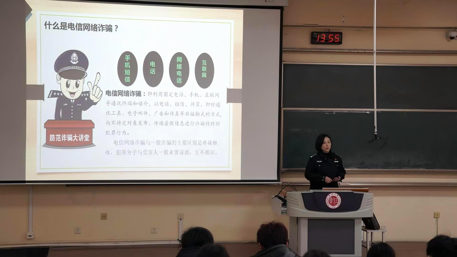 為進一步提高我院學(xué)生對各類詐騙的鑒別能力和自我防范意識,石化學(xué)院分工會聯(lián)合科教城派出所開展防范電信詐騙專題講座,活動由科教城派出所吳明宇警官主講。