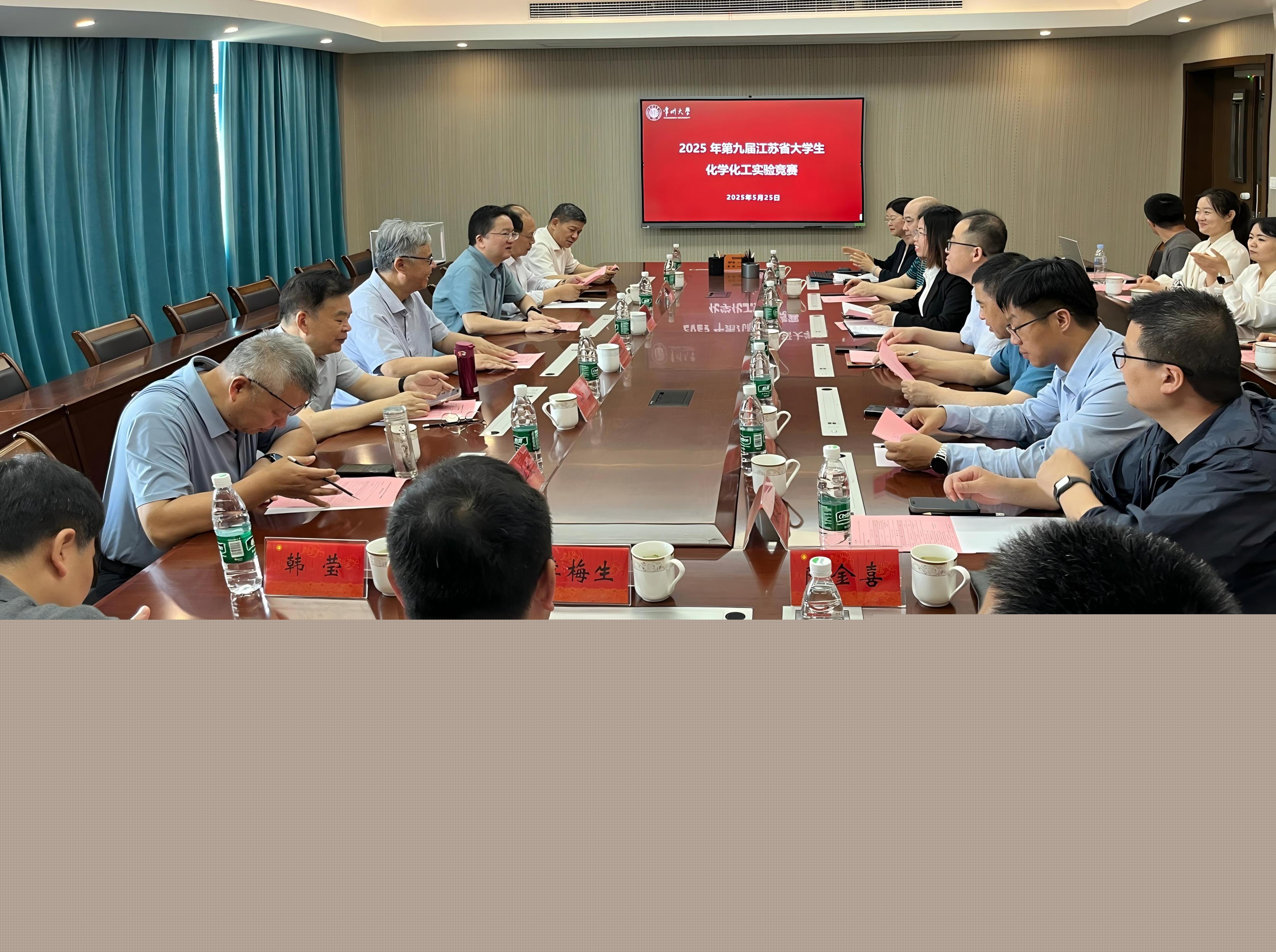 5月25日上午,第九屆江蘇省化學(xué)化工實(shí)驗(yàn)競(jìng)賽組委會(huì)會(huì)議在我院召開。組委會(huì)副主任江蘇省化學(xué)化工實(shí)驗(yàn)教學(xué)示范中心聯(lián)席會(huì)主席、南京大學(xué)教授張劍榮,江蘇省化學(xué)化工學(xué)會(huì)副理事長(zhǎng)兼秘書長(zhǎng)陳立來,江蘇省化學(xué)化工學(xué)會(huì)副秘書長(zhǎng)、江蘇大學(xué)教授朱衛(wèi)華;組委會(huì)成員江南大學(xué)教授劉仁,淮陰師范學(xué)院教授李梅生,南京工業(yè)大學(xué)教授楊文忠,南京理工大學(xué)教授鐘秦,南京師范大學(xué)教授唐亞文,江蘇大學(xué)教授潘建明以及相關(guān)高校的多位領(lǐng)導(dǎo)出席。常州大學(xué)黨委常委、副校長(zhǎng)周剛,石油化工學(xué)院副院長(zhǎng)(主持工作)劉平,石油化工學(xué)院副院長(zhǎng)黃薇以及會(huì)務(wù)組成員代表參加本次會(huì)議。會(huì)議由劉平主持。