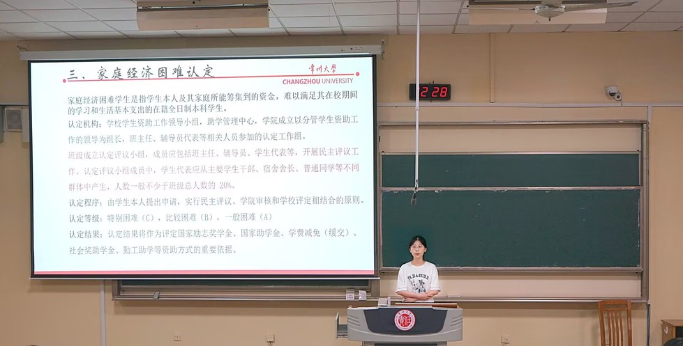 會議第二項(xiàng)議程,由輔導(dǎo)員何瑞玉為同學(xué)們進(jìn)行資助政策解讀。何老師圍繞學(xué)生資助體系,詳細(xì)介紹了國家助學(xué)貸款、國家助學(xué)金、國家勵(lì)志獎(jiǎng)學(xué)金、社會助學(xué)金以及學(xué)校各類專項(xiàng)資助項(xiàng)目的申請條件、流程和注意事項(xiàng)。她的講解細(xì)致全面,旨在幫助同學(xué)們清晰了解政策,徹底解除后顧之憂,決不讓經(jīng)濟(jì)問題成為求學(xué)路上的絆腳石,鼓勵(lì)大家放下包袱,專心學(xué)業(yè)。