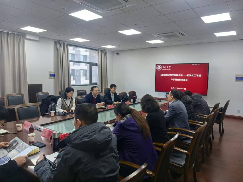 2025年11月26日下午,常州大學石油化工學院與石化盈科信息技術有限責任公司過程控制事業(yè)部(以下簡稱“石化盈科過控事業(yè)部”)開展產(chǎn)學研對接交流會。石化盈科過控事業(yè)部總經(jīng)理王建平、總經(jīng)理助理陳玉石,石油化工學院黨委書記業(yè)緒華、院長劉平、副院長黃薇、劉英杰及教師代表參加會議。