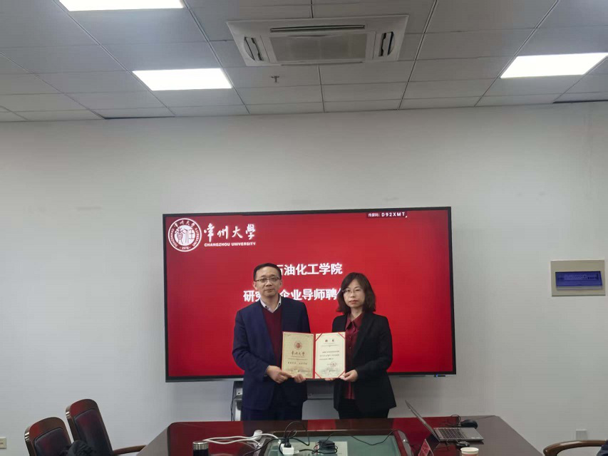 會上,劉平為王建平頒發(fā)石油化工學院企業(yè)導師聘書。