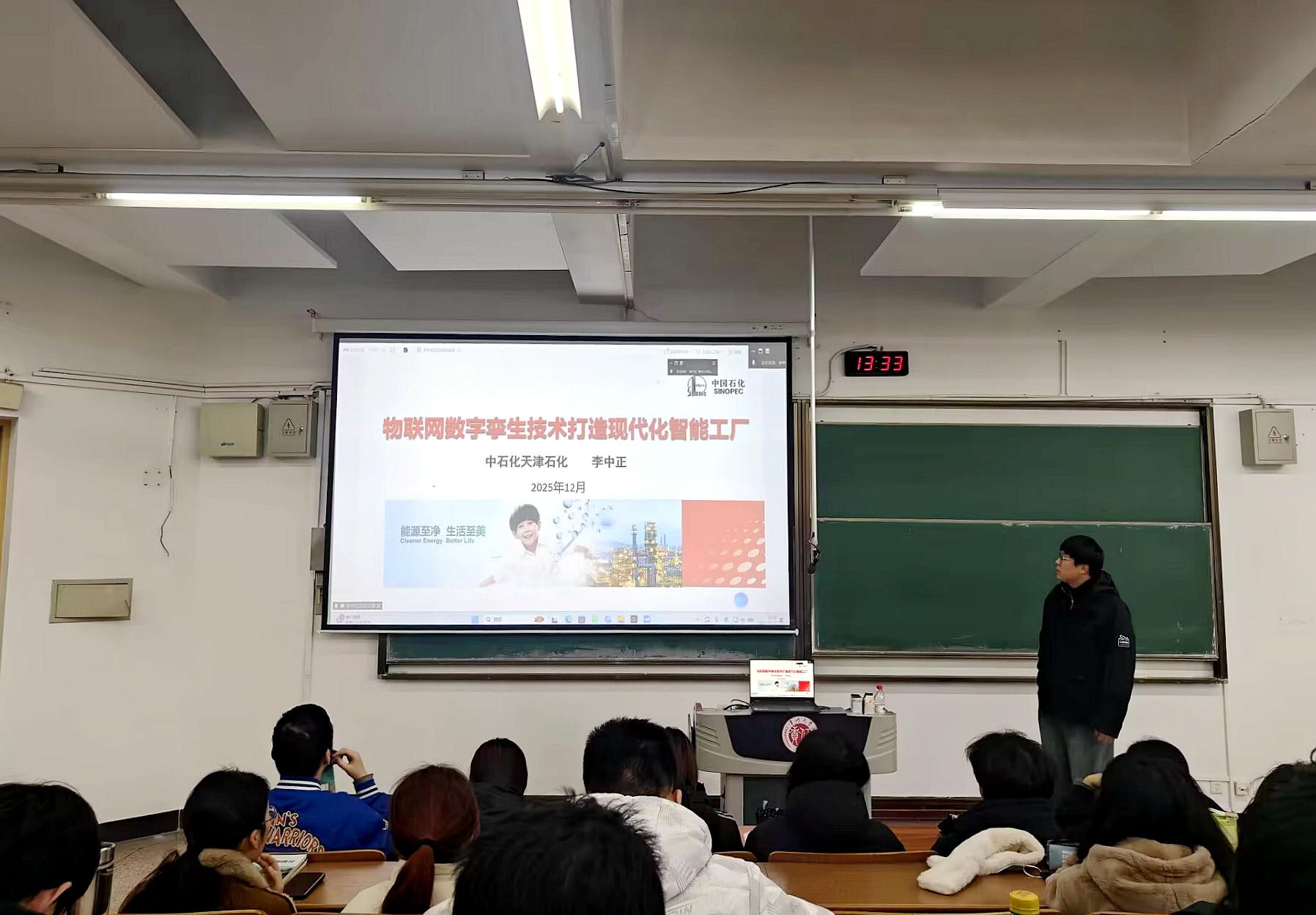 12月12日,化工數(shù)字技術(shù)課程邀請?zhí)旖蚴瘜<依钪姓こ處熥哌M課堂,為師生作了題為“物聯(lián)網(wǎng)數(shù)字孿生技術(shù)打造現(xiàn)代化智能工廠”的專題授課。