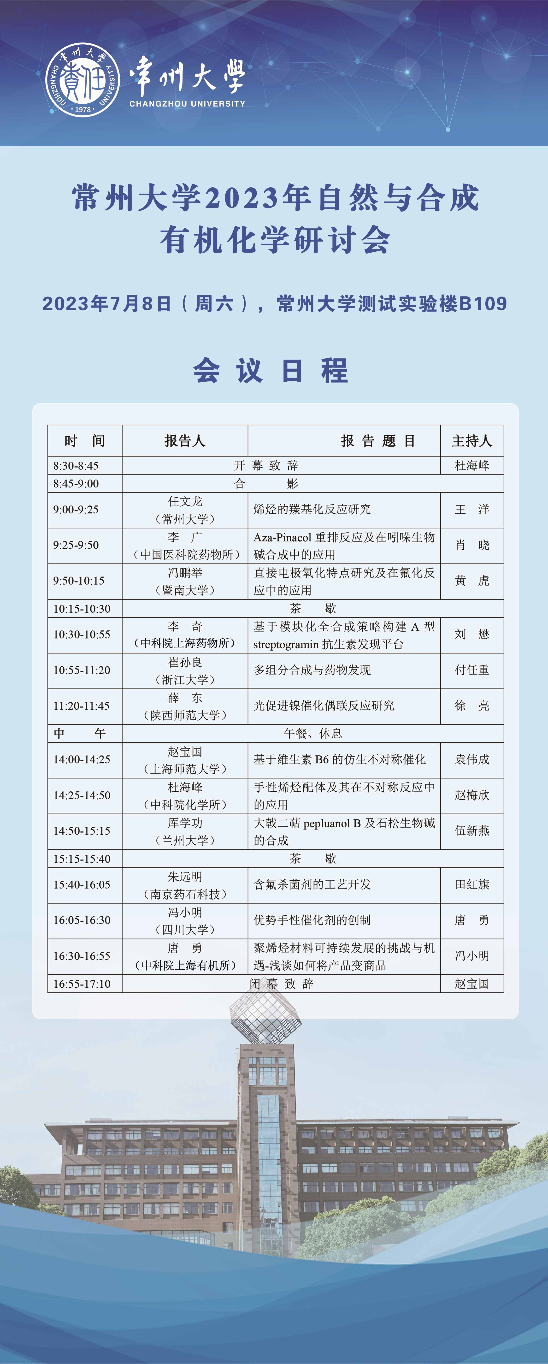 【學(xué)術(shù)會(huì)議】常州大學(xué)2023年自然與合成有機(jī)化學(xué)研討會(huì)
