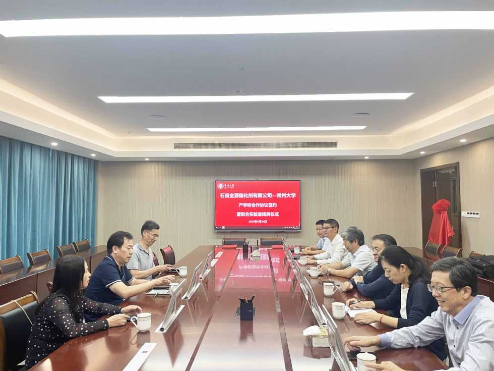 | 石首金源催化劑有限公司—常州大學(xué)產(chǎn)學(xué)研合作協(xié)議簽約暨聯(lián)合實(shí)驗(yàn)室揭牌儀式成功舉行 |