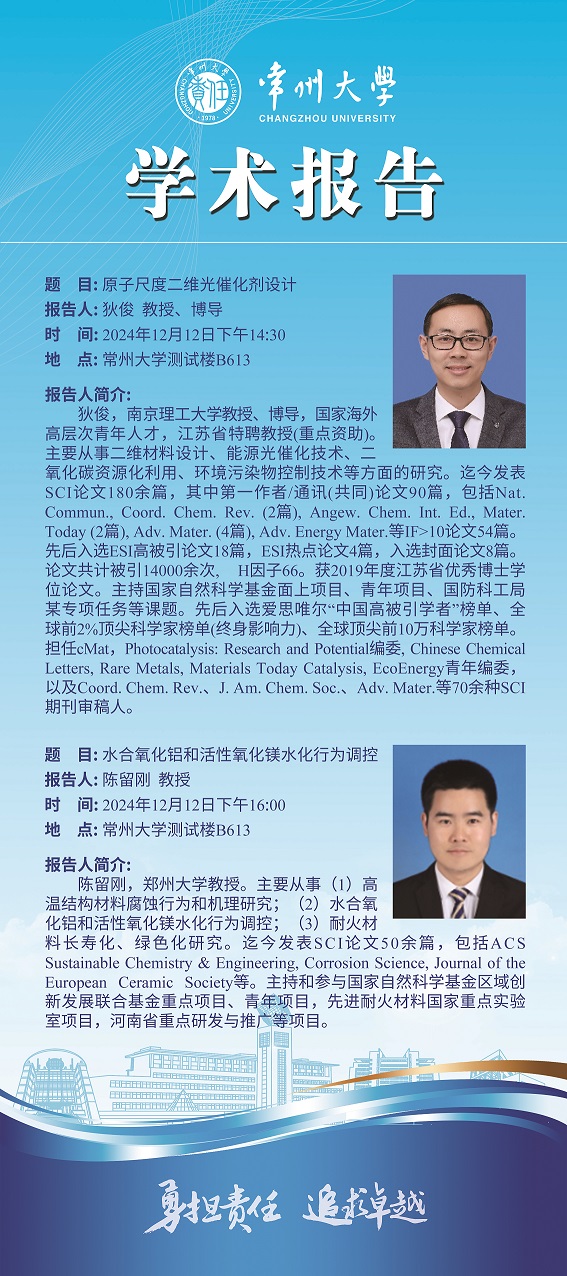 | 【學(xué)術(shù)報告】12月12日學(xué)術(shù)報告—狄俊教授 南京理工大學(xué) 陳留剛教授 鄭州大學(xué) |