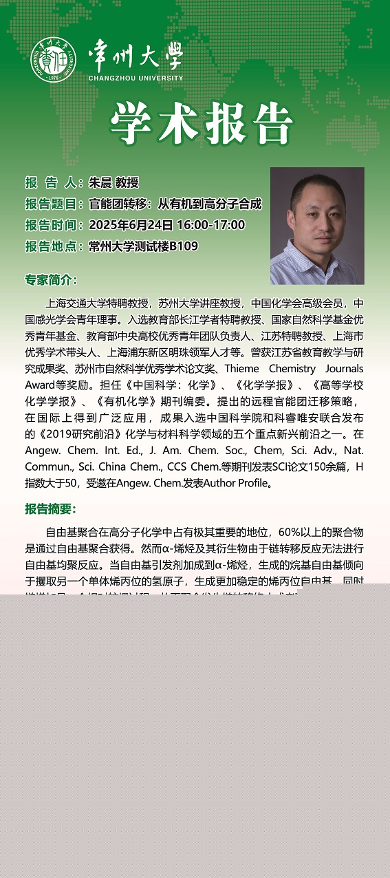 | 【學(xué)術(shù)報(bào)告】6月24日功能雜環(huán)研究院學(xué)術(shù)報(bào)告—Takahiko Akityama教授 學(xué)習(xí)院大學(xué) 朱晨教授 上海交通大學(xué) |