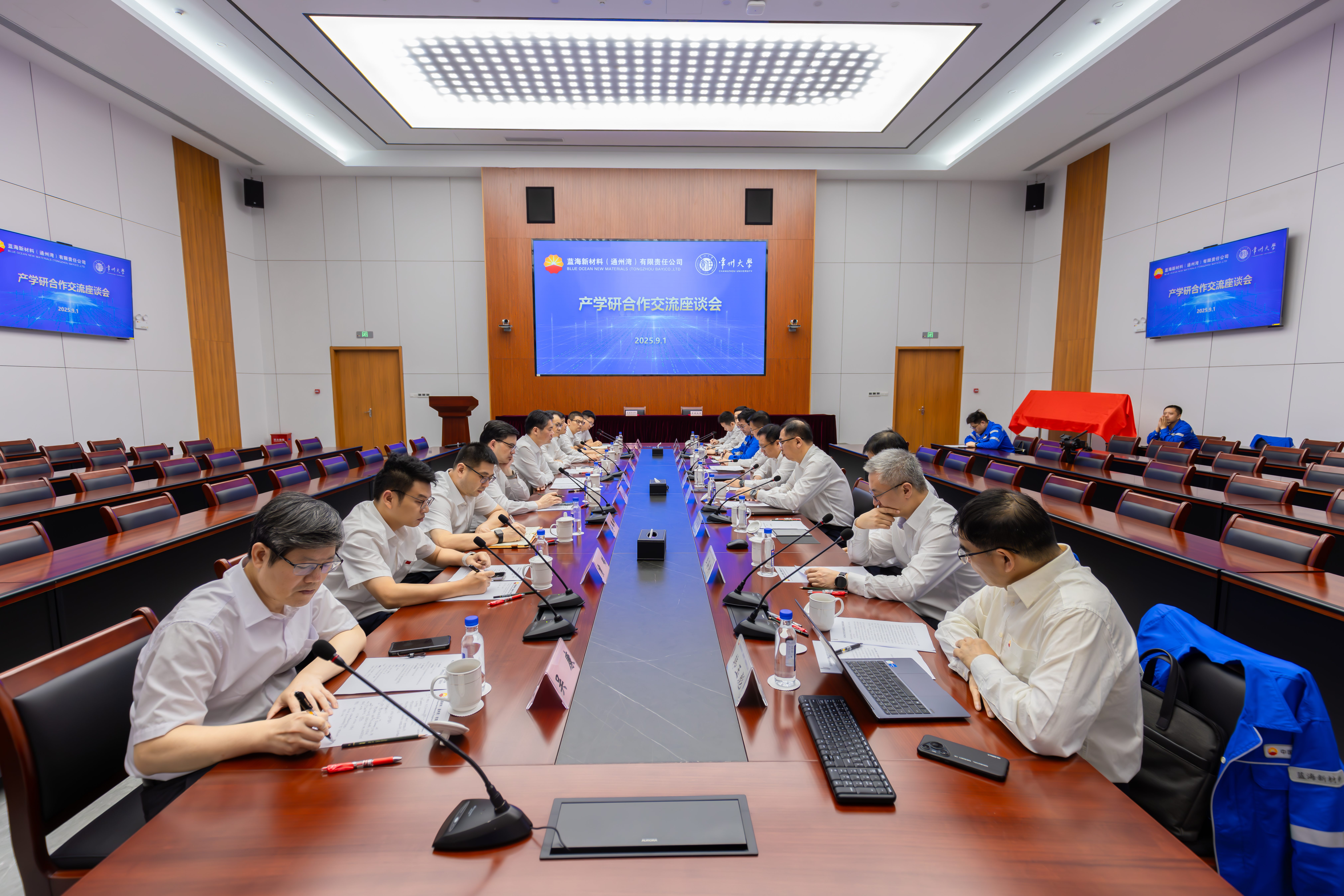 會(huì)上,雙方圍繞黨建、人才培養(yǎng)及高端材料、生物制造、精細(xì)化工等科技領(lǐng)域開展了深入交流,共同謀劃合作新路徑,推動(dòng)合作項(xiàng)目盡快落地見效,為藍(lán)海新材料高質(zhì)量發(fā)展注入新動(dòng)能。