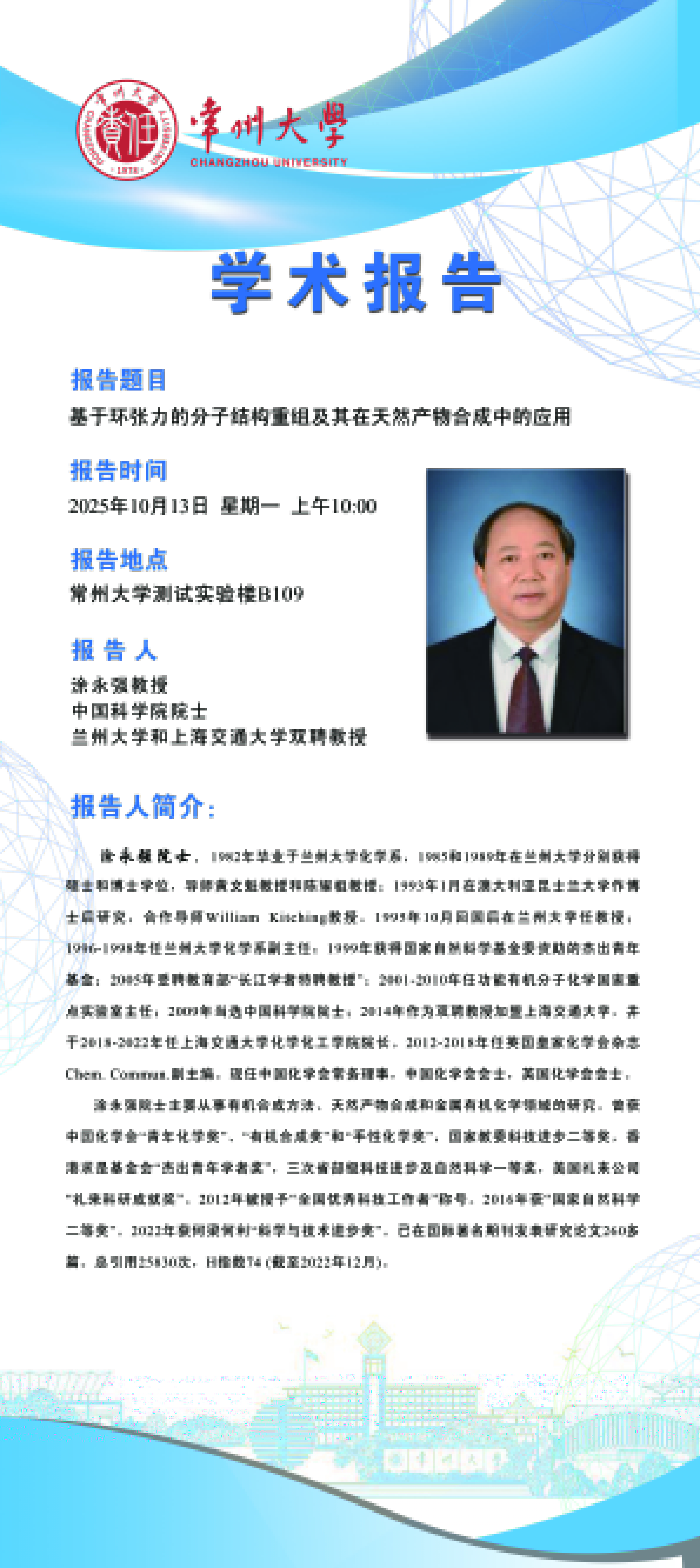 【學術報告】10月13日基于環(huán)張力的分子結構重組及其在天然產(chǎn)物合成中的應用