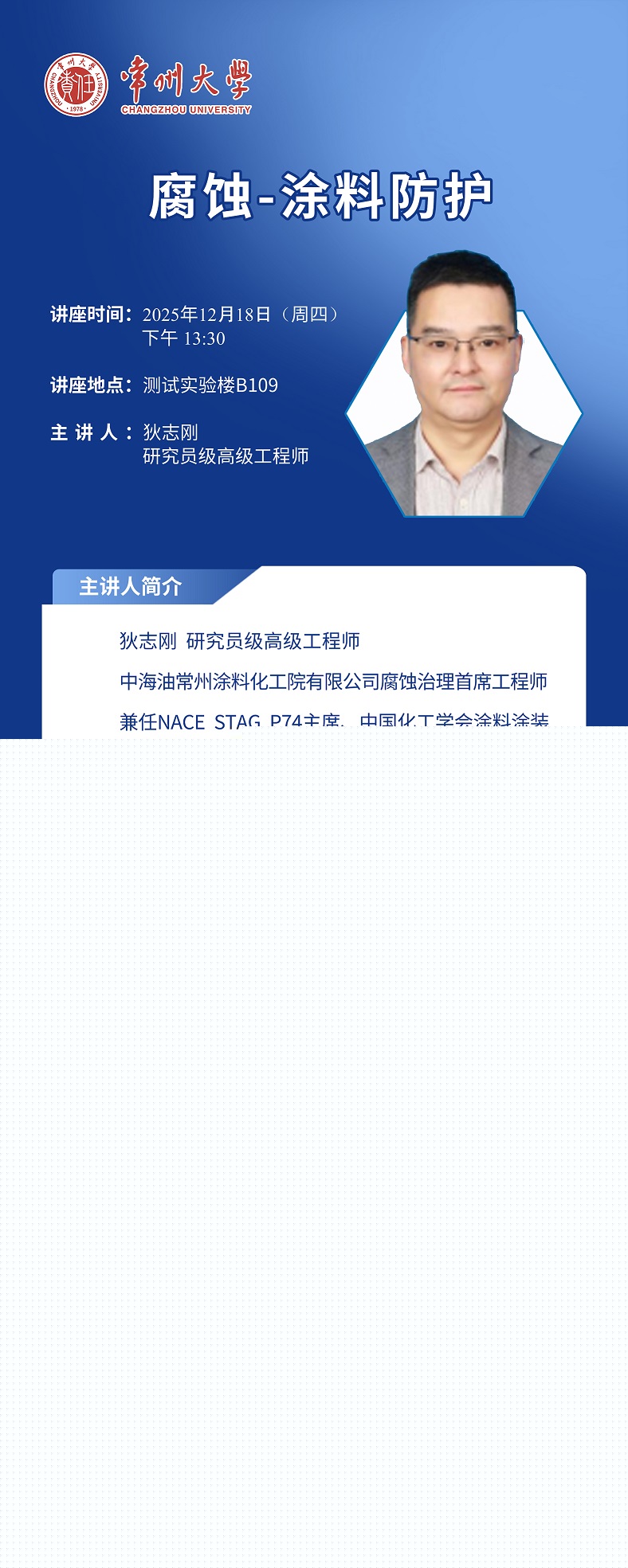 【學術報告】12月18日學術報告——中海油常州涂料化工院 狄志剛 研究員級高級工程師、周如東 高級工程師