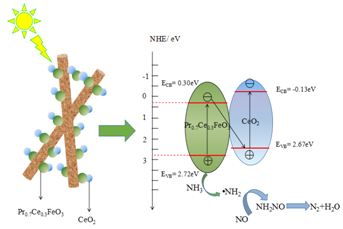 Rational construction of direct Z-scheme doped perovskite/palygorskitenanocatalyst for photo-SCR removal of NO: Insight into the effect of Ceincorporation Xiazhang Li *, Haiyang Shi , Xiangyu Yan , ShixiangZuo , Yuying Zhang , Qun Chen , Chao Yao *,Chaoying Ni*,Journal of Catalysis 369 (2019) 190–200 原文鏈接: https://www.sciencedirect.com/science/article/pii/S0021951718304391?dgcid=author 針對(duì)脫硝催化劑低溫活性差,抗硫抗水性弱,成本高的難題,本團(tuán)隊(duì)近年來(lái)嘗試將光驅(qū)動(dòng)引入傳統(tǒng)SCR催化脫硝體系,基于“固溶析出相”的理念,以天然凹凸棒石(坡縷石)為基體,相繼設(shè)計(jì)了Mn離子摻雜type-I型(ChemicalEngineeringJournal, 2017, 320, 211-221),Ni離子摻雜type-II型photo-SCR催化劑(Applied Catalysis B: Environmental,2018,231, 92–100),巧妙解決了光生載流子易復(fù)合的難題,并構(gòu)建了石墨烯介質(zhì)的間接Z-Scheme(Journal of Catalysis,2018,357,59–68),氮摻雜碳量子點(diǎn)修飾的直接Z-Scheme催化劑(ACS Sustainable Chem. Eng, 2018, 6,6, 10616?10627),解決了光生電荷遷移后氧化還原活性變差的難題。本工作在此基礎(chǔ)上,在鈣鈦礦中引入Ce離子,通過(guò)費(fèi)米能級(jí)的調(diào)控引導(dǎo)在凹凸棒石表面形成摻雜PrFeO3/CeO2直接Z-Scheme“固溶析出相”異質(zhì)結(jié),無(wú)須傳導(dǎo)介質(zhì),有效提升了光能吸收,保持了高氧化還原活性的同時(shí)表現(xiàn)出良好的低溫抗硫抗水性。該工作得到了國(guó)家自然科學(xué)基金(51674043)和江蘇省國(guó)際科技合作項(xiàng)目(BZ2015040)的資助,同時(shí)得到了美國(guó)特拉華大學(xué)電鏡中心主任倪超英教授的大力支持。 |