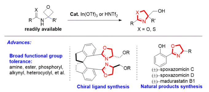 A Mild Catalytic Synthesis of 2-Oxazolines via Oxetane Ring-Opening: Rapid Access to A Diverse Family of Natural Products Hai Huang,Wen Yang,Zuliang Chen,Zengwei Laiand Jianwei Sun* 近日,孫建偉和黃海教師課題組在化學(xué)國(guó)際頂級(jí)刊物Chemical Science上發(fā)表題為“A Mild Catalytic Synthesis of 2-Oxazolines via Oxetane Ring-Opening: Rapid Access to A Diverse Family of Natural Products”的研究論文。論文通訊聯(lián)系人為孫建偉教授,第一作者為石油化工學(xué)院新進(jìn)青年教師黃海博士。噁唑啉類化合物在生物活性分子以及金屬配體中都有廣泛的應(yīng)用。關(guān)于該類化合物的合成目前只能依賴于非催化地胺基醇或者N-烯丙基甲酰胺類化合物的環(huán)合反應(yīng)。該工作巧妙地將甲酰胺鍵引入到氧雜環(huán)丁烷分子中從而實(shí)現(xiàn)其分子內(nèi)開(kāi)環(huán)反應(yīng)。該方法發(fā)展了一種催化合成噁唑啉環(huán)的方法,同時(shí)兼具條件溫和、高效性、優(yōu)越的官能團(tuán)容忍性等優(yōu)點(diǎn)。通過(guò)該方法不僅能夠?qū)崿F(xiàn)新型手性配體地合成,同時(shí)能夠快速地合成系列天然產(chǎn)物包括(±)-Spoxazomicin C, (±)-Madurastatin B1和(±)-Spoxazomicin D。 Chemical Science是是英國(guó)皇家化學(xué)會(huì)(RSC)旗艦刊物,2019年影響因子為9.556。中科院分區(qū)為一區(qū),TOP及Nature Index刊物。該期刊發(fā)表綜合化學(xué)領(lǐng)域的高水平論文,致力于為化學(xué)領(lǐng)域研究人員的學(xué)術(shù)觀點(diǎn)和學(xué)術(shù)信息交流提供一個(gè)國(guó)際化、高質(zhì)量的學(xué)術(shù)交流期刊平臺(tái)。 原文鏈接: https://pubs.rsc.org/en/content/articlelanding/2019/sc/c9sc03843d#!divAbstract |