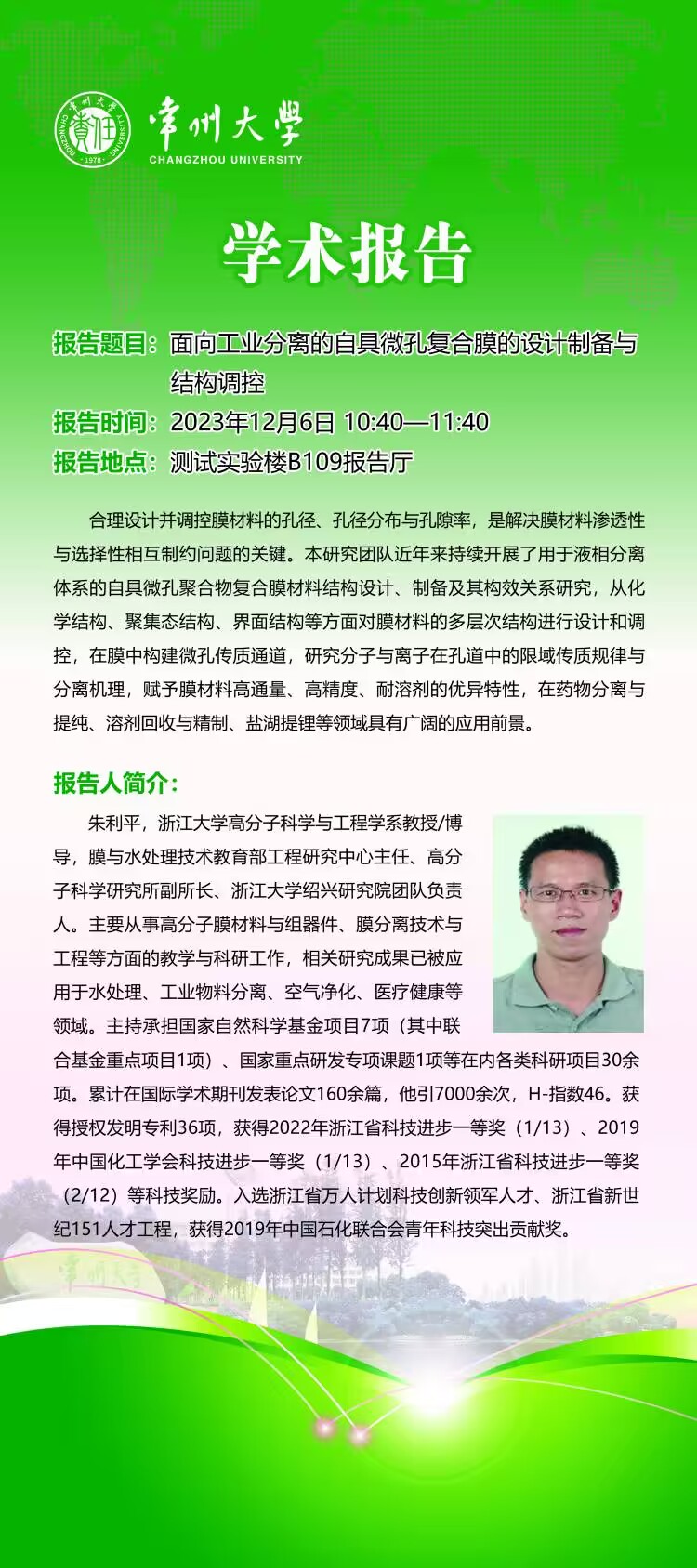 【學(xué)術(shù)報告】12月6日學(xué)術(shù)報告——朱利平教授,浙江大學(xué)